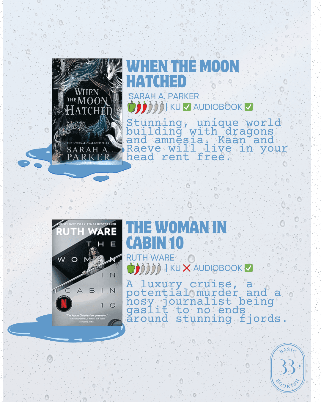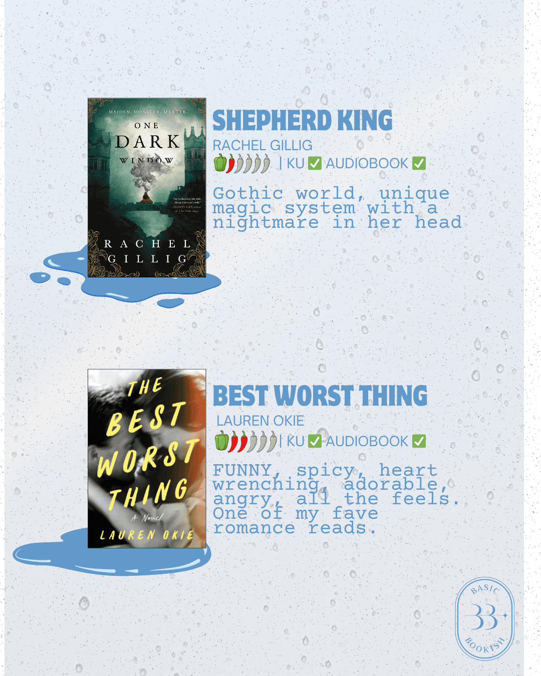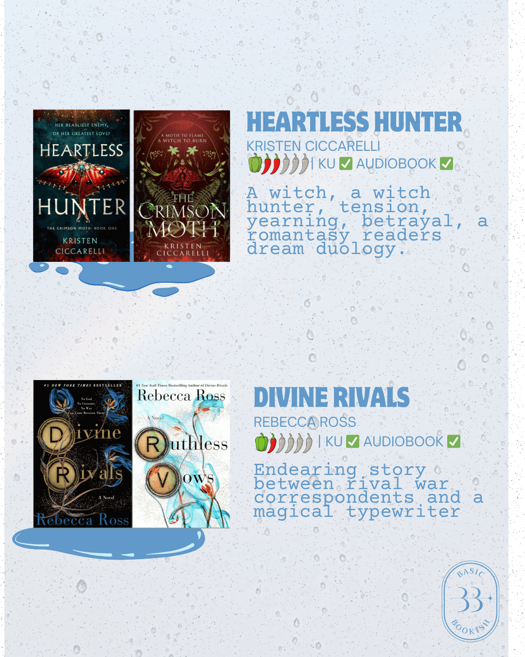 Spring has sprung (pun intended if you ready spicy romantasy/romancy books like us)! This time of year is perfect to cuddle up with some of our fave rainy day reads! All of these are kind of moody, kind of foggy, kind of rainy....🌧 You get the vibes.
